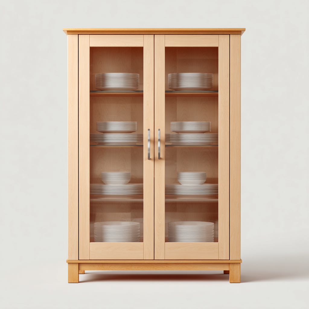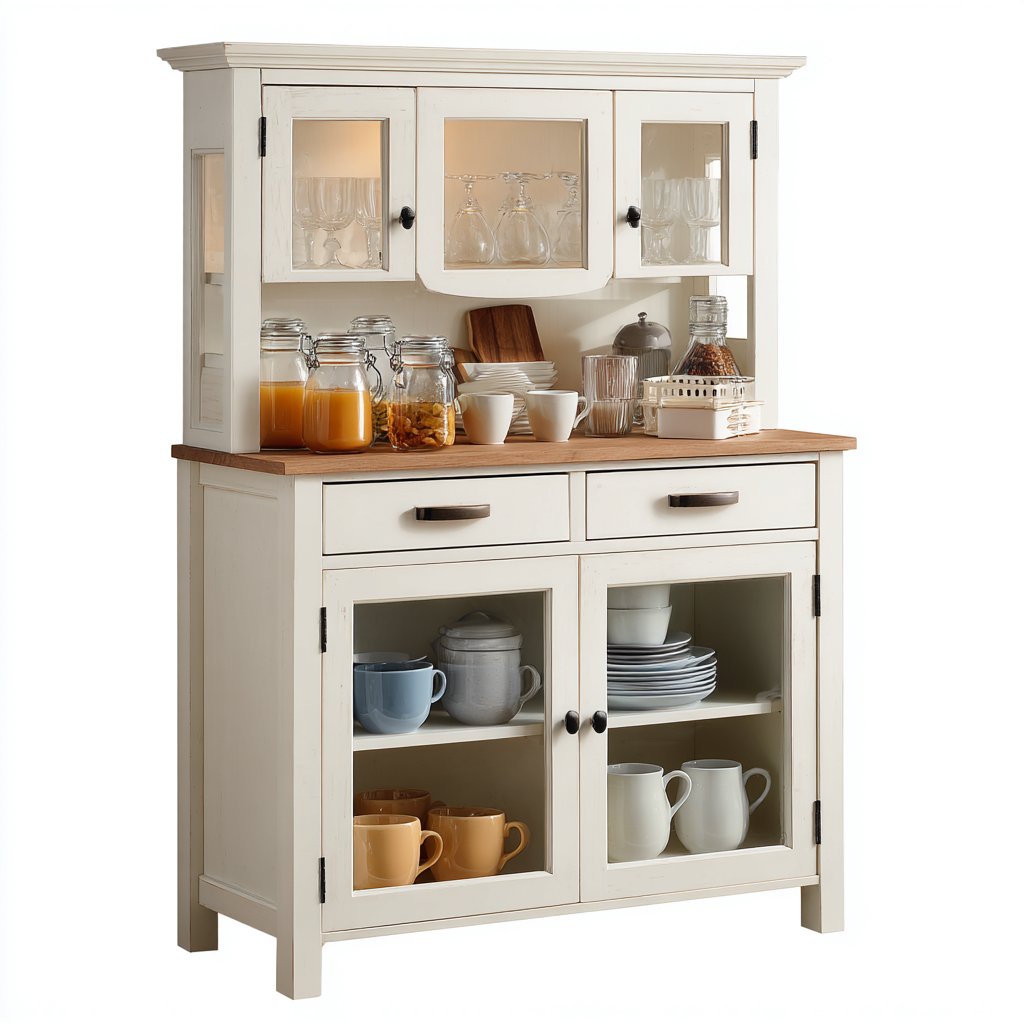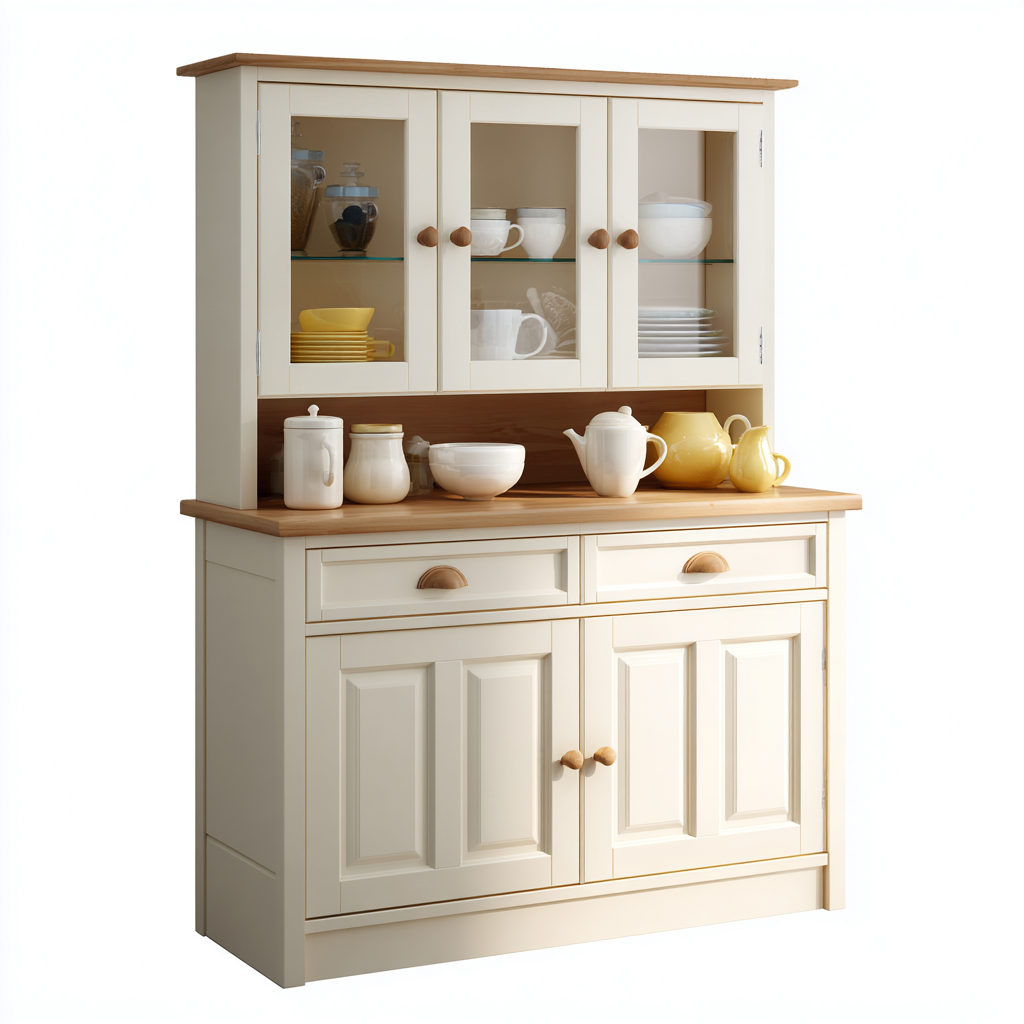 Küchenschrank Holz - Glas 120x45x185 cm - creme - natur - klassisches Design für Küche