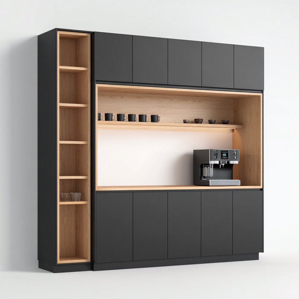 Küchenschrank Holz Metall 190x60x210 cm - Schwarz - Natur - Modernes Design - Für Küche geeignet