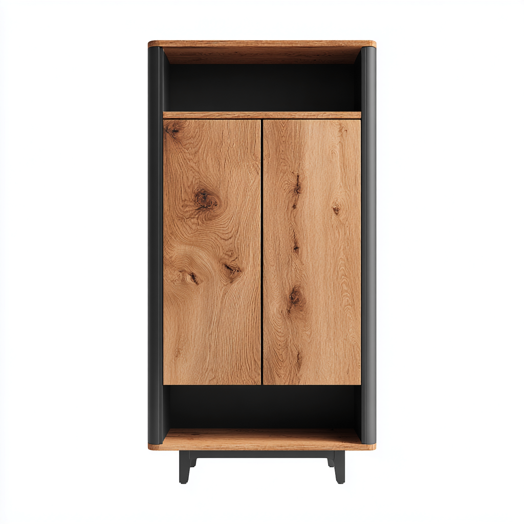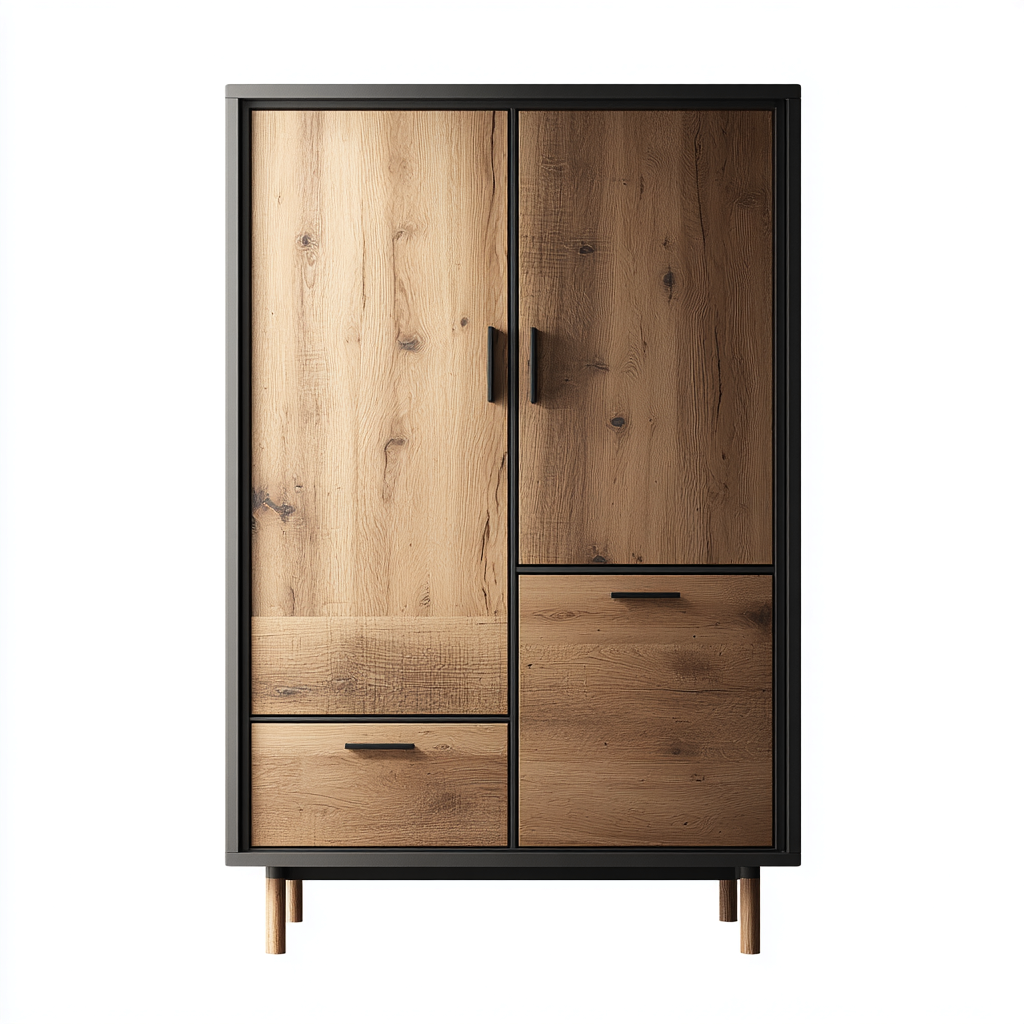 Küchenschrank Holz 80x40x165 cm - natur - schwarz - industrielles Design für Küche