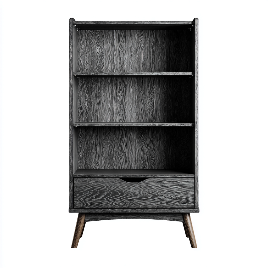 Dieses moderne schwarze Bücherregal bietet eine elegante und funktionale Lösung für die Aufbewahrung von Büchern und Dekorationsobjekten. Die klare Linienführung und die offene Struktur fügen sich nahtlos in Wohn-, Arbeits- und Lernbereiche ein.