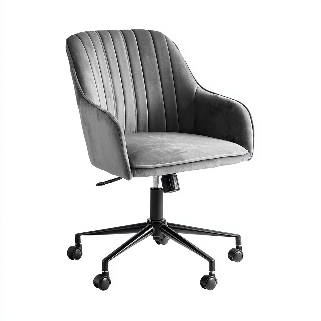Dieser Bürostuhl aus Samtstoff kombiniert eine elegante Optik mit einer komfortablen Polsterung. Die vertikal gesteppte Rückenlehne verleiht dem Stuhl ein modernes Erscheinungsbild und sorgt gleichzeitig für angenehmen Halt im Büroalltag.