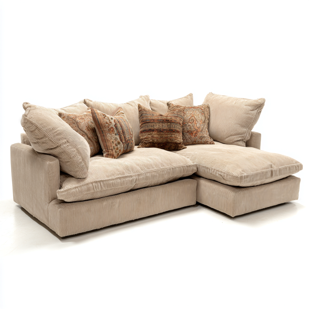 Dieses Ecksofa bietet eine großzügige, weich gepolsterte Sitzfläche und schafft einen komfortablen Mittelpunkt im Wohnzimmer. Die breite Formgebung sorgt für ein entspanntes Sitzgefühl und fügt sich harmonisch in moderne Wohnräume ein.