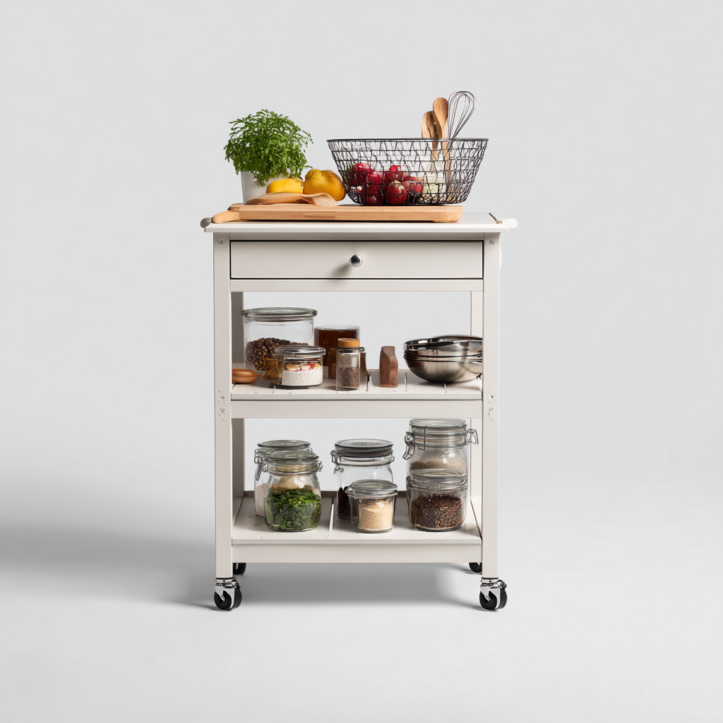 Dieser praktische Küchenwagen bietet eine stabile Ablagefläche und flexible Nutzung für den täglichen Einsatz in der Küche. Durch seine kompakte Größe eignet er sich ideal für zusätzliche Arbeitsfläche oder die geordnete Aufbewahrung von Küchenutensilien.