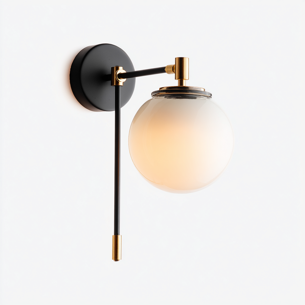 Diese moderne Wandleuchte vereint ein elegantes schwarzes Metallgestell mit goldfarbenen Akzenten und einem kugelförmigen Glasschirm. Die weiche Lichtwirkung schafft eine angenehme Atmosphäre in Wohnräumen, Schlafzimmern oder Fluren.